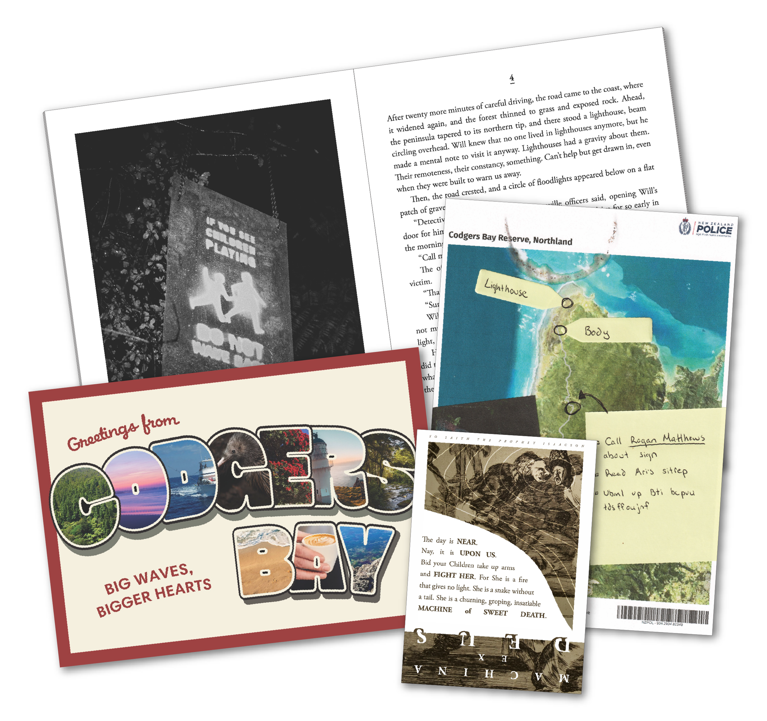 For example, the first chapter pack includes a map of the crime scene, a post card from the fictional setting of Codgers Bay, and an ominous tract from a mysterious prophet.